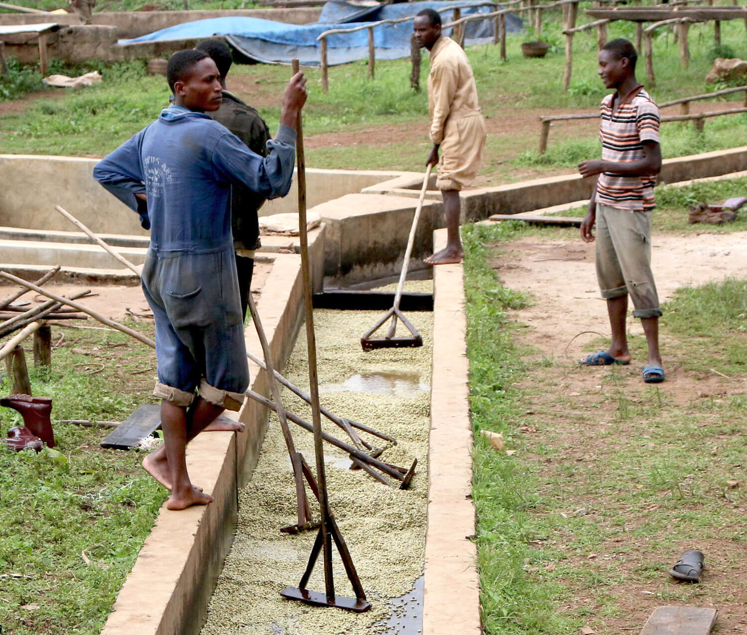 In addition to varieties, processing methods also contribute to end quality. Most coffee produced in Ethiopia is grown by smallholders, but they often do not have their own processing infrastructure. Instead, most smallholders deliver cherry to a wet mill. Wet mills are owned by either cooperatives or private companies.