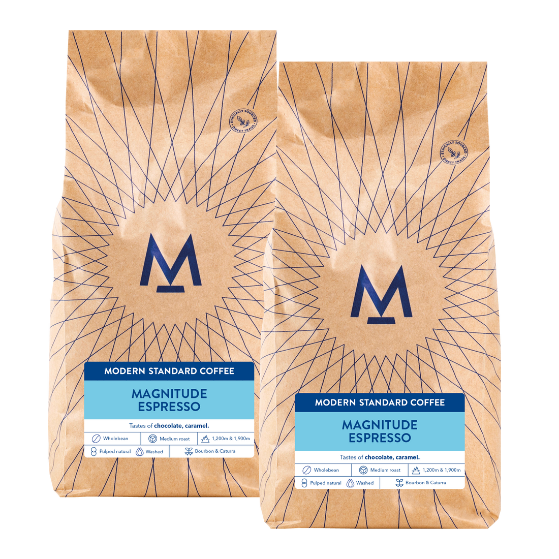 Tweaking a classic can be risky, but we knew that by upping our Colombian component and dropping the Brazil, would result in a sweeter more caramely coffee. With a juicier mouthfeel and longer finish, Magnitude is the coffee for you if you're wanting bags of sweetness and a moorish finish.